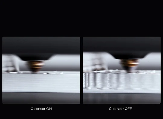 A G-sensor in the printhead measures the resonance frequencies of high-speed printing, and auto-tune the printer to mitigate it. No more ghosting or ringing on the print.