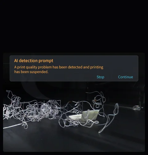 K1 Max uses an AI camera to watch over spaghetti failure, foreign objects, debris, etc. It will alert you when an error occurs. It also supports real-time monitoring and creates time-lapses for sharing.