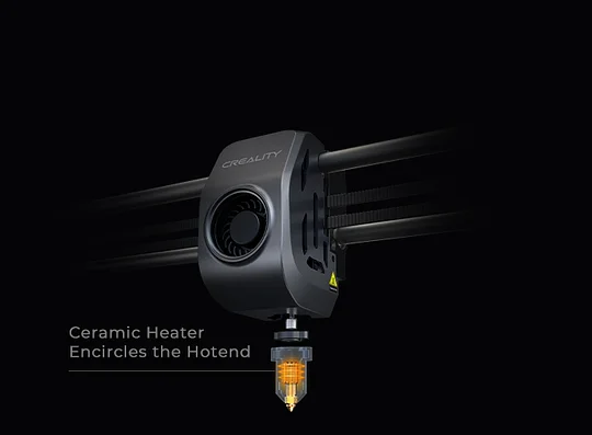 New ceramic heater, encircling the entire hotend. It heats to 200℃ in 40s and melts the filament instantly. Dual-gear direct extruder, delivering strong extrusion force. Hotend with a titanium alloy heatbreak and a hardened steel nozzle, working with flying colors in up to 300℃. Ceramic Heater Encircles the Hotend.