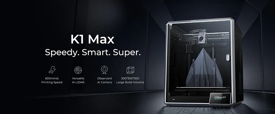 K1 Max boasts a 300x300x300mm large build volume, great for rapid prototyping or design verification. It also offers a high build volume to printer size ratio of 25.5%.